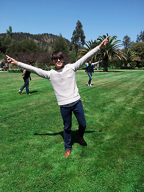 사진 속 려욱은 푸른 잔디밭에서 청바지와 운동화의 편한 차림을 하고 밝게 웃고 있다. 려욱은 자유로움을 만끽하려는 듯 두 팔을 들어 올렸는데 유난히도 긴 팔이 눈에 들어와 착시를 연상케 했다.