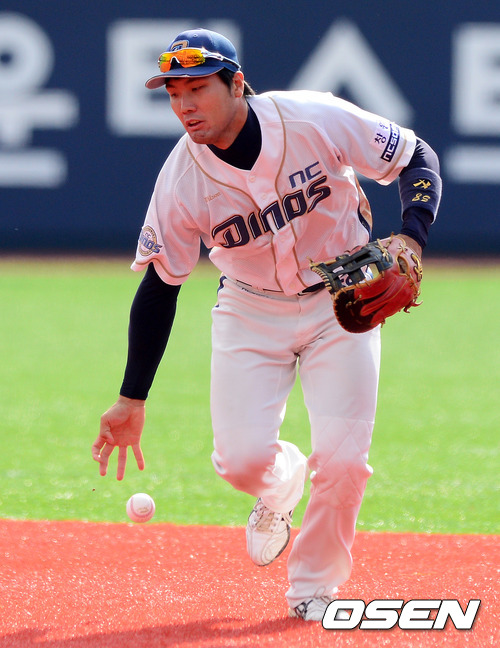 1회초 1사에서 NC 조평호가 라미고 린즈핑의 내야땅볼에 볼을 놓치고 있다.