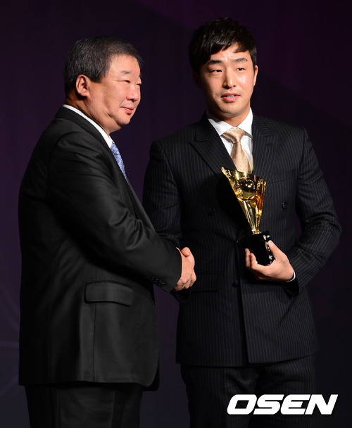 이에 앞서 넥센 내야수 서건창(23) 역시 91표 중 79표를 얻어 최우수 신인선수로 뽑혔다. 이로써 넥센은 한 해에 MVP와 신인선수를 동시에 배출한 팀이 됐다. 2006년 한화(류현진 동시 수상), 2007년 두산(리오스-임태훈)이 트로피를 가져간 뒤 5년 만에 나온 역대 3번째 기록이다.
