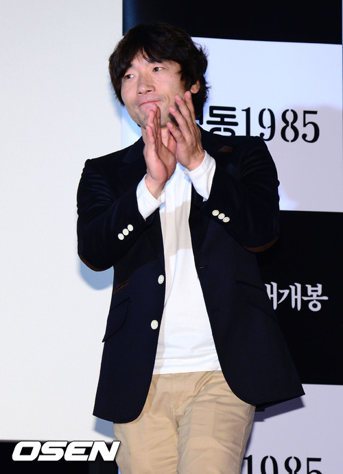 5일 오후 동대문 메가박스에서 열린 영화 '남영동 1985'(정지영 감독)언론배급시사회에서 박원상이 박수치며 포토월을 빠져나가고 있다.