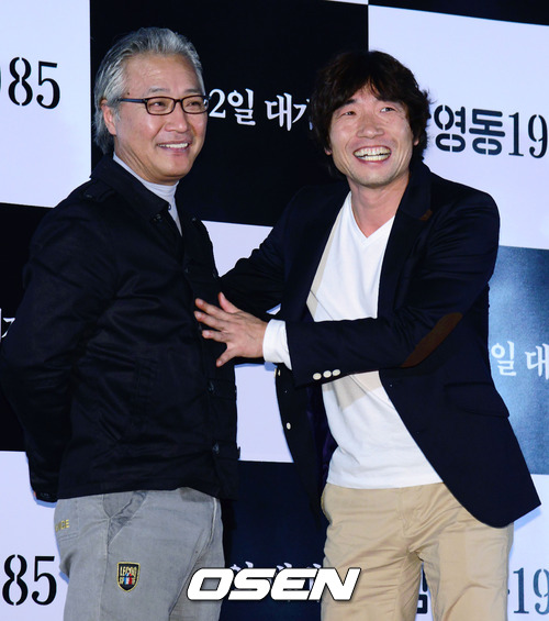 5일 오후 동대문 메가박스에서 열린 영화 '남영동 1985'(정지영 감독)언론배급시사회에서 이경영과 박원상이 포토타임을 갖고 있다.