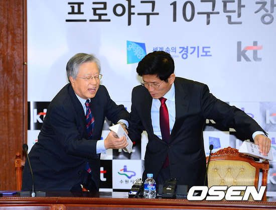 경기도와 수원시는 이날 KT와 업무협약(MOU)를 맺고 10구단 창단 지원을 약속했다.