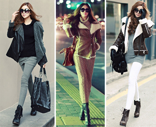 겨울에 많이 입는 치마 레깅스나 스키니 진과 심플하게 매치하면 모던하면서도 세련된 캐주얼 룩을 완성할 수 있다. 시크한 무드를 발산하고 싶을 땐 블랙컬러 무스탕에 블랙팬츠를 입고 화이트, 그레이 등 모노톤 티셔츠를 입으면 된다.