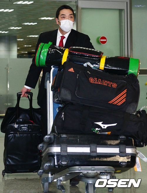 요미우리 아베 신노스케가 입국장을 나서고 있다.