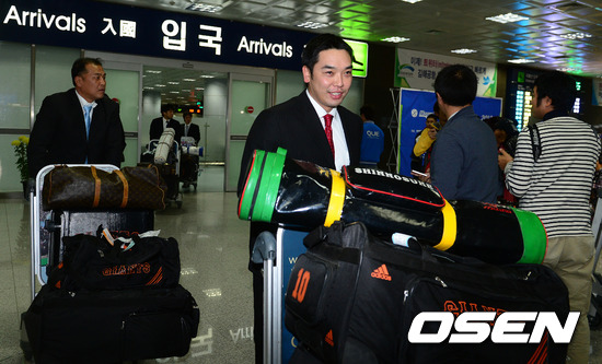 '마구매니저 아시아시리즈 2012'에 출전하는 일본 프로야구 챔피언 요미우리 자이언츠가 6일 오후 부산 김해공항을 통해 입국했다.