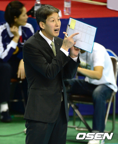 6일 오후 구미 박정희체육관에서 열린 '2012-2013 NH농협 V-리그' 여자부 GS칼텍스와 KGC인삼공사의 경기, 인삼공사 이성희 감독이 선수들에게 작전을 지시하고 있다.