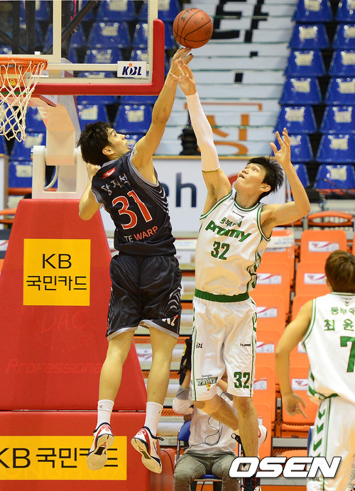 1쿼터 동부 김주성과 KT 장재석이 리바운드를 다투고 있다.
