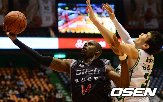 4쿼터 KT 데이비스가 동부 김주성의 수비를 피해 슛을 시도하고 있다./jpnews@osen.co.kr