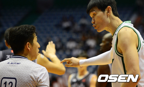 4쿼터 동부 김주성이 파울을 선언당하고 심판과 이야기를 나누고 있다./jpnews@osen.co.kr
