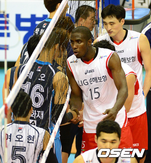 경기 종료 후 삼성화재 선수들과 LIG 선수들이 악수를 나누고 있다. /sunday@osen.co.kr