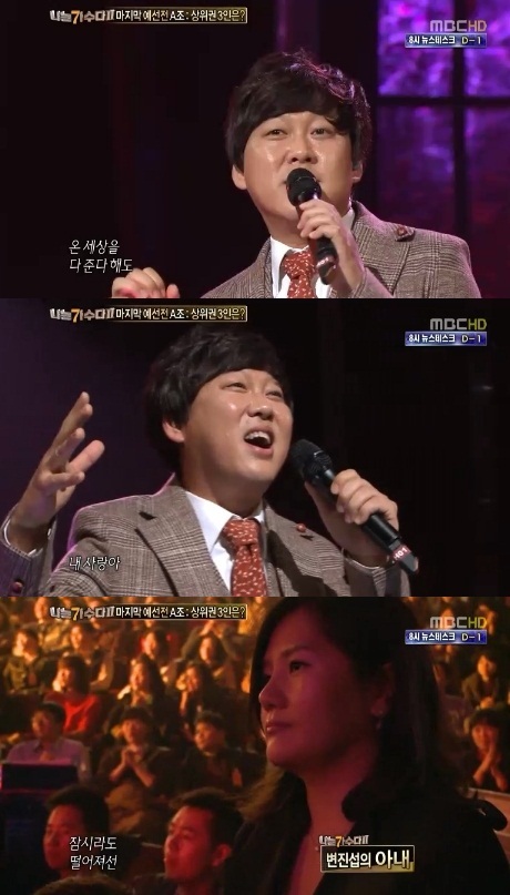 변진섭은 지난 4일 방송에서 동료 가수 한영애와 어깨동무를 하며 퇴장했다. 어렵게 경연에 참가한 후 첫 무대에서 ‘비와 당신’으로 1위를 차지하는 등 사랑을 받은 그는 그동안 '나가수2'에 집중하느라 미뤄뒀던 음반 제작, 작곡 등에 매진할 계획이다.