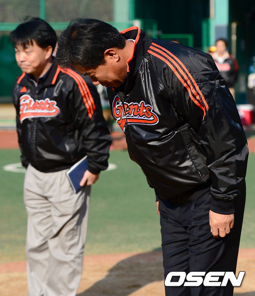 김시진 감독이 선수단을 향해 인사를 하고 있다.