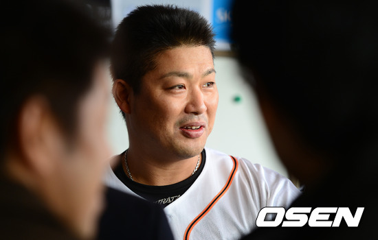 요미우리 무라타 슈이치가 취재진과 인터뷰를 하고 있다.