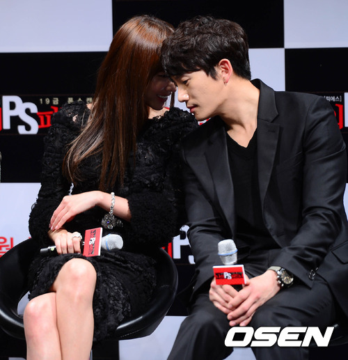7일 오전 서울 신사동 CGV 압구정에서 열린 영화 제작보고회에서 김아중 지성이 이야기를 나누고 있다.