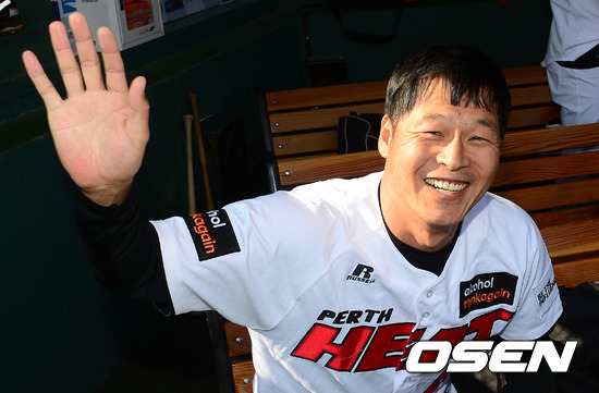구대성이 취재진에 인사를 하고 있다. '시드니 블루삭스'에서 뛰고 있는 구대성은 아시아시리즈 기간 동안 '퍼스 히트'로 임대됐다.