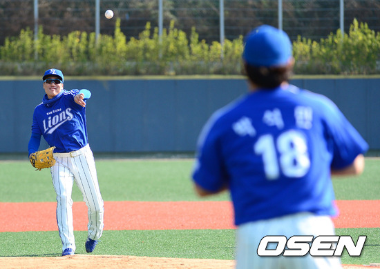 '마구매니저 아시아시리즈 2012'에 출전하는 한국 프로야구 챔피언 삼성 라이온즈가 7일 오후 경남 김해 상동야구장에서 공식훈련을 가졌다.