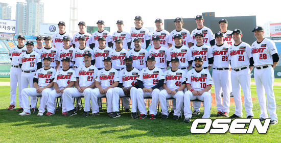 퍼스 히트 선수단이 포토타임을 하고 있다. '시드니 블루삭스'에서 뛰고 있는 구대성은 아시아시리즈 기간 동안 '퍼스 히트'로 임대됐다.
