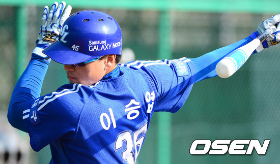 삼성 이승엽이 타격 훈련을 하고 있다.