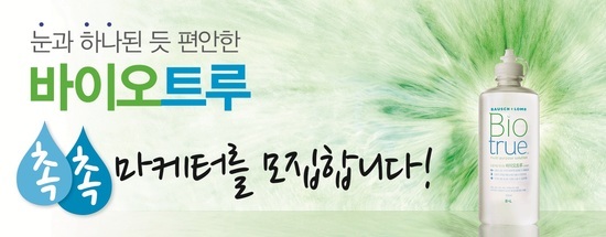 콘택트렌즈 기업 바슈롬 코리아의 ‘바이오트루(Biotrue)’가 7일부터 25일까지 전국 대학생 대상 마케터의 꿈과 열정을 펼쳐갈 ‘촉촉 마케터’를 모집한다.