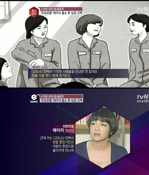 에이미는 7일 방송된 케이블채널 tvN ‘이뉴스-결정적 한방’이 연결한 전화인터뷰에서 “교도소 안에서 정말 좋았다”고 밝혔다.