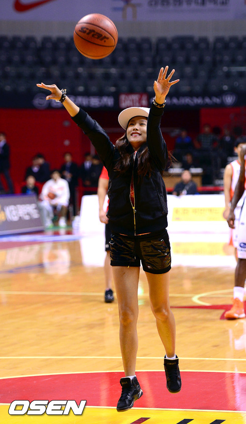 7일 오후 고양 실내체육관에서 'KB 국민카드 2012-2013 프로농구' 고양 오리온스와 인천 전자랜드의 경기에 앞서 가수 유리가 시구를 하고 있다.
