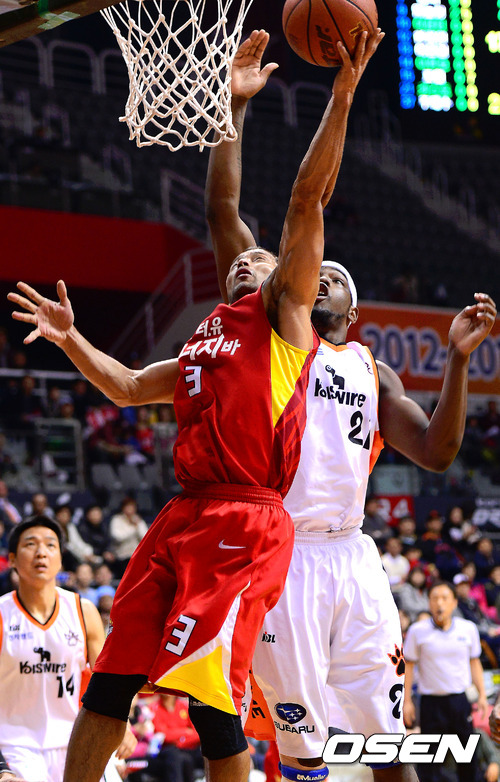 7일 오후 고양 실내체육관에서 'KB 국민카드 2012-2013 프로농구' 고양 오리온스와 인천 전자랜드의 경기 1쿼터 오리온스 전태풍이 전자랜드 카스토의 슛블록을 피해 득점을 올리고 있다.