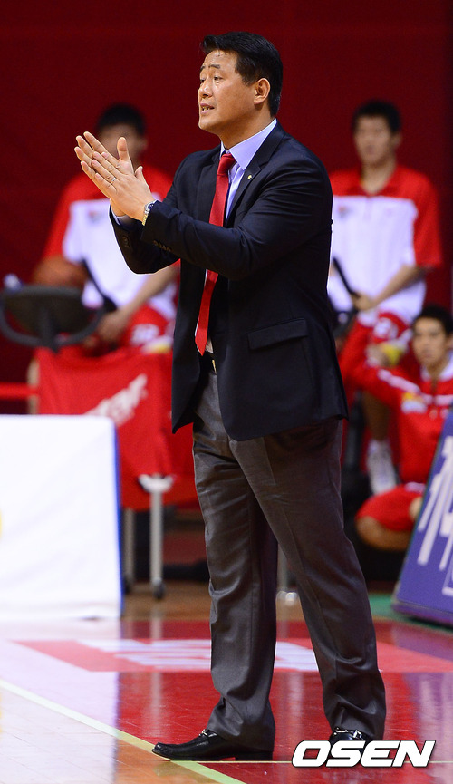 7일 오후 고양 실내체육관에서 'KB 국민카드 2012-2013 프로농구' 고양 오리온스와 인천 전자랜드의 경기 2쿼터 오리온스 추일승 감독이 선수들을 격려하고 있다.