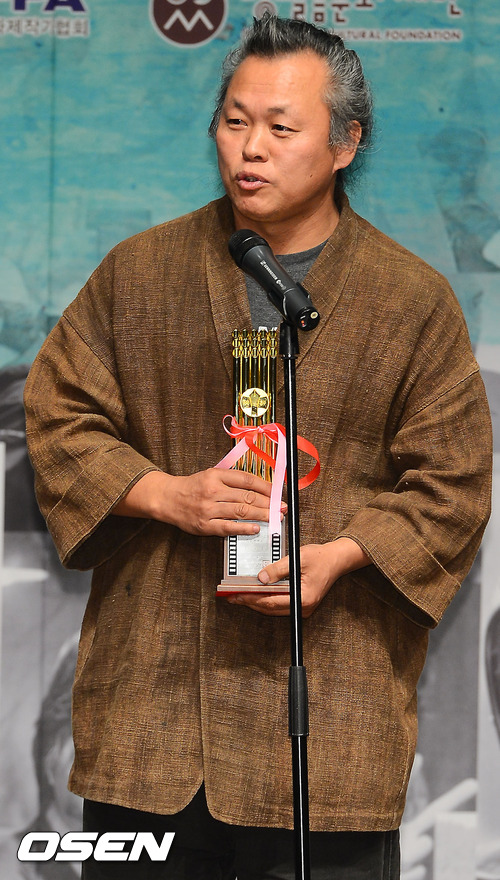 7일 오후 서울 프레스센터 국제회의실에서 열린 제32회 영평상 시상식에서 김기덕 감독이 감독상을 수상한 후 소감을 말하고 있다.