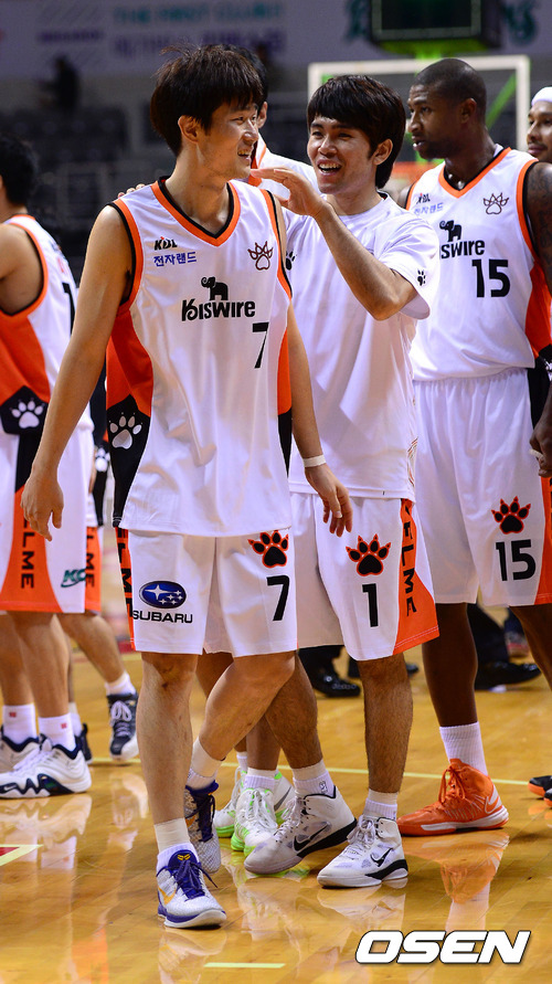 경기 종료 후 전자랜드 정병국과 강혁이 기뻐하고 있다. / youngrae@osen.co.kr