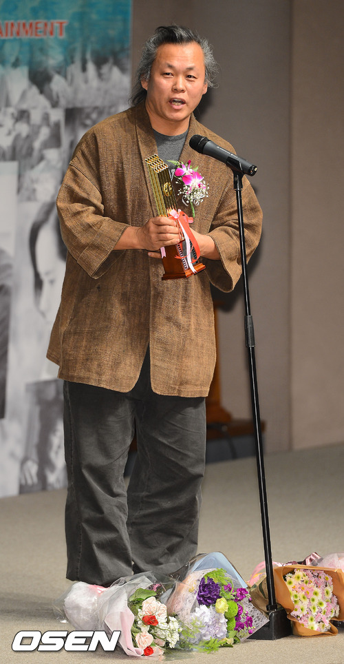 7일 오후 서울 프레스센터 국제회의실에서 열린 제32회 영평상 시상식에서 김기덕 감독의 피에타가 최우수작품상을 수상한 후 수상소감을 말하고 있다.
