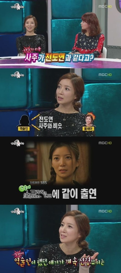 윤세아는 "사주가 전도연과 같다"며 "예전에 점을 보러 갔는데 역술인이 전도연 사주와 똑같다고 했다. 하늘에서 별이 빛나는 사주라고 했다"고 전했다.