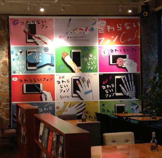 적외선 센서가 손의 움직임을 판단해 단말기를 조작할 수 있는 모션기능인 ‘베가모션’을 카페 이름인 ‘터치리스 폰 카페’에 반영했다고 업체는 설명했다.