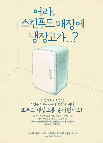 생푸드는 천연유래 성분과 정제수로만 99.4%가 구성되어 푸드 그대로의 영양과 질감이 살아있고, 이름처럼 푸드의 신선함을 지키기 위해 제조부터 사용까지 42일 내에 이루어져야 한다. 때문에 전국 500 개의 스킨푸드 매장 내 냉장고까지 설치될 예정이라고.