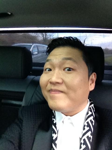 싸이는 지난 7일(한국시간) 자신의 트위터에 "강연 가는 길에(On my way to make a speech)"라는 글과 함께 자신의 셀카 한 장을 게재했다.