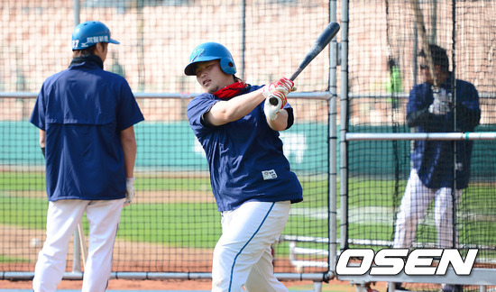 8일 부산 사직야구장에서 열린 '마구매니저 아시아시리즈 2012' 라미고 몽키스와 차이나 스타즈의 개막전 경기, 경기에 앞서 라미고 몽키스 선수들이 타격 훈련을 하고 있다.