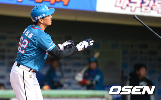 8일 오후 부산 사직야구장에서 열린 '마구매니저 아시아시리즈 2012' 라미고 몽키스와 차이나 스타즈의 개막전 경기, 3회초 무사 1,2루 라미고 천진펑이 중월 스리런홈런을 타구를 바라보고 있다.