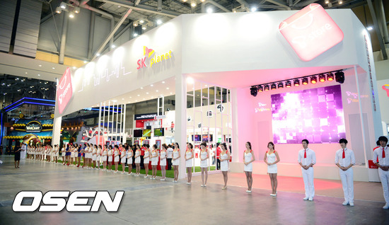 8일 오전 부산 해운대 벡스코(BEXCO)에서 열린 국제게임전시회 '지스타 2012' 티스토어 부스 안내 도우미들이 관객 맞을 준비를 하고 있다.