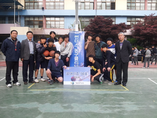 또한 골대기증 학교에서는 리틀 썬더스 강사들이 직접 학생들을 상대로 레크레이션 위주의 눈높이 농구 클리닉을 진행하여 큰 호응을 받았다.