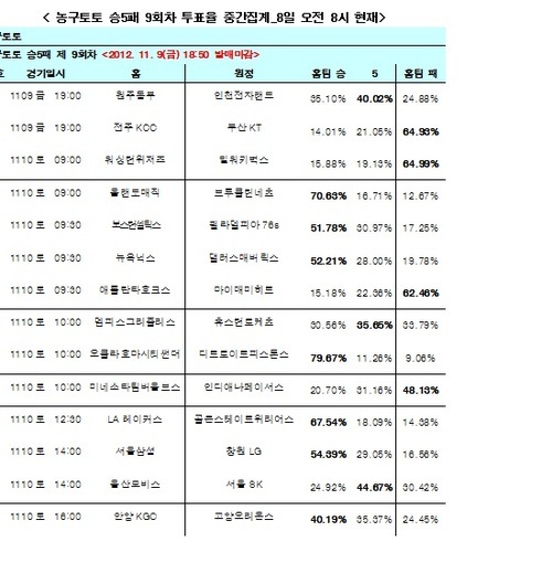 농구토토 승5패 9회차 투표율 중간 집계 결과