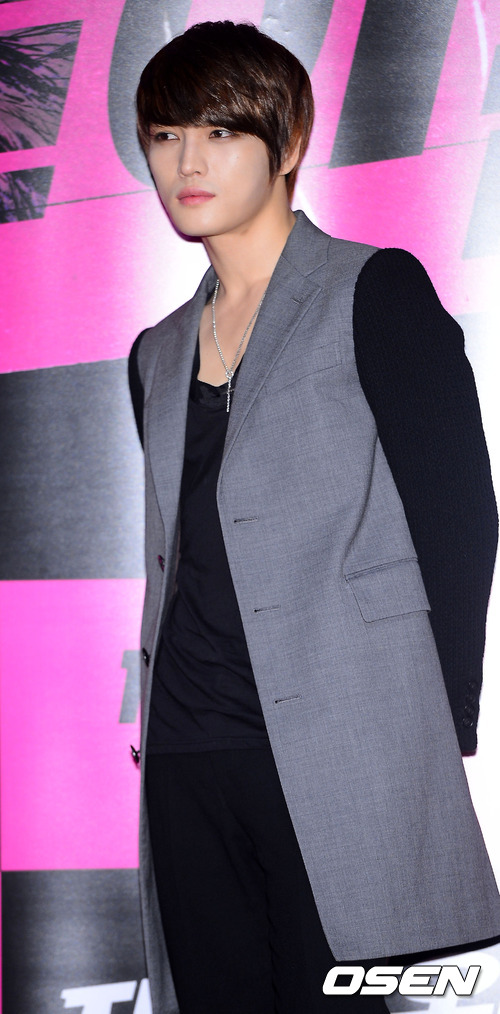 8일 오후 서울 롯데시네마 건대입구에서 진행된 영화 '자칼이 온다' 언론배급시사회에서 김재중이 포토타임을 갖고 있다.