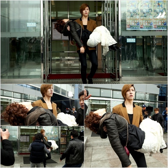 두 사람의 포옹신은 테이크원(TAKE ONE)의 멤버 강휘(박기웅)의 퇴출로 팬들이 방송국까지 몰려와서 항의를 벌이면서 이뤄졌다. 라디오 방송 때문에 로비로 들어선 태익과 만옥, 고동(이승효) 앞에 경비를 뚫고 들어선 팬들이 몰리며 아수라장이 돼버린 상황에서 놀란 고동이 태익을 감싸 안고 나가게 되는 것.