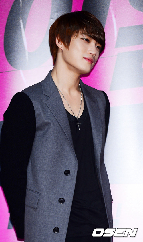 8일 오후 서울 롯데시네마 건대입구에서 진행된 영화 '자칼이 온다' 언론배급시사회에서 김재중이 포토타임을 갖고 있다.