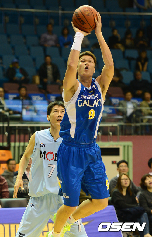 2쿼터 삼성 이규섭이 노마크 점프슛을 시도하고 있다.