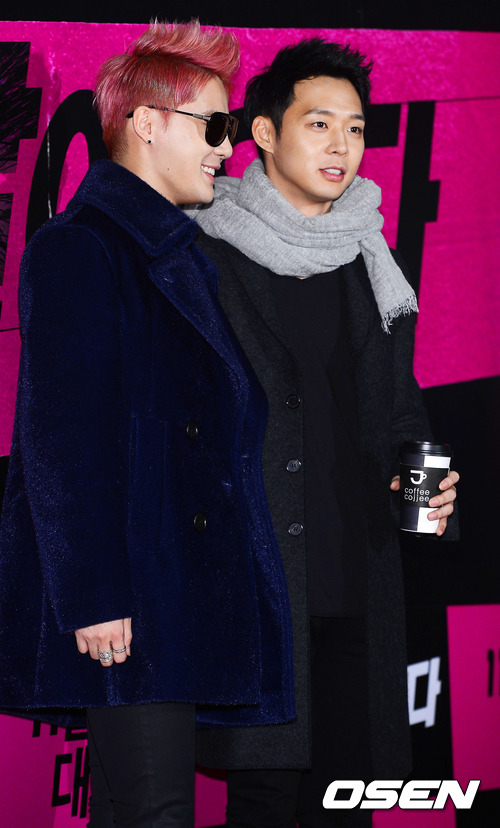 8일 저녁 서울 롯데시네마 건대입구에서 진행된 영화 '자칼이 온다' VIP 시사회에서 JYJ의 김준수와 박유천이 포토월에서 포즈를 취하고 있다.