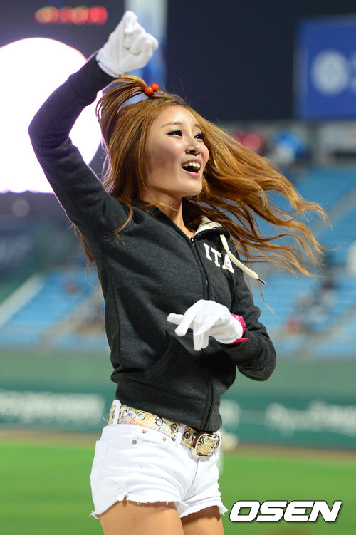 8일 오후 부산 사직야구장에서 열린 '마구매니저 아시아시리즈 2012' 롯데 자이언츠와 퍼스 히트의 경기, 치어리더가 화려한 공연을 펼치고 있다.