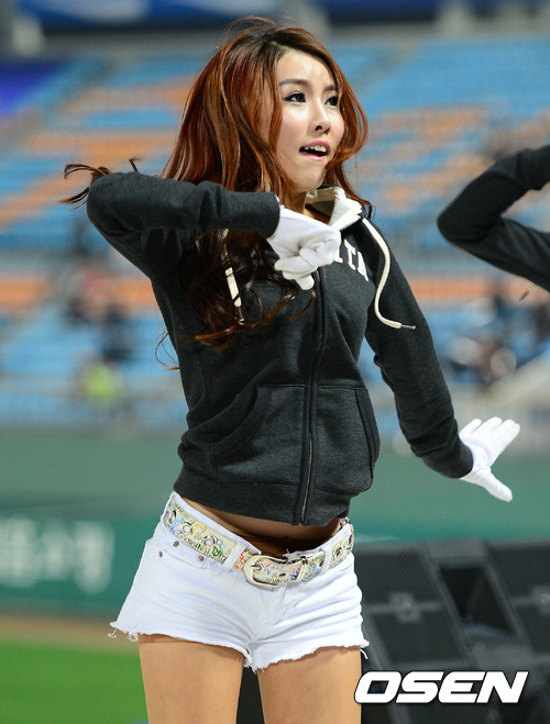 8일 오후 부산 사직야구장에서 열린 '마구매니저 아시아시리즈 2012' 롯데 자이언츠와 퍼스 히트의 경기, 치어리더가 화려한 공연을 펼치고 있다.