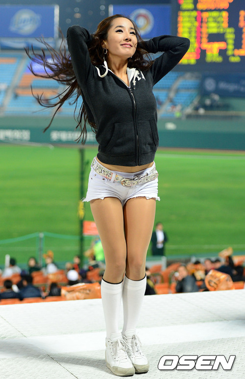 8일 오후 부산 사직야구장에서 열린 '마구매니저 아시아시리즈 2012' 롯데 자이언츠와 퍼스 히트의 경기, 치어리더가 화려한 공연을 펼치고 있다.