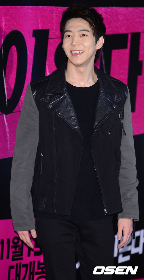 8일 저녁 서울 롯데시네마 건대입구에서 진행된 영화 '자칼이 온다' VIP 시사회에서 박유환이 포토월에서 환하게 미소짓고 있다.