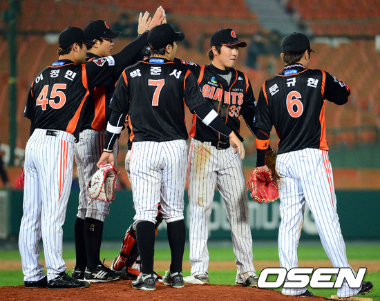 경기 종료 후 롯데 선수들이 승리의 기쁨을 나누고 있다. /sunday@osen.co.kr