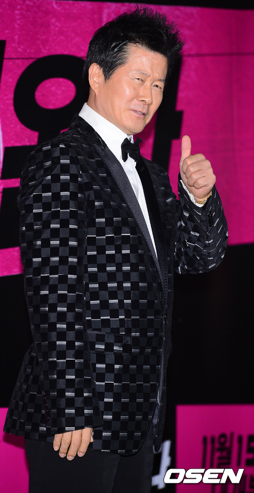 8일 저녁 서울 롯데시네마 건대입구에서 진행된 영화 '자칼이 온다' VIP 시사회에서 태진아가 포토월에서 포즈를 취하고 있다.